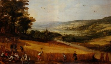Joos de Momper Antwerp (1564-1635) LANDSCAPE WITH HARVESTERS Oil on oak panel |